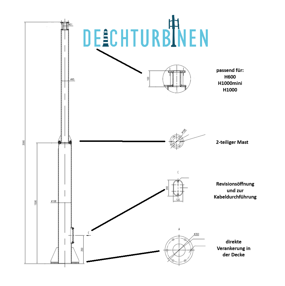 Would you like to make your own bracket or mast? We will be happy to provide you with the dimensions of the connecting flange after you have purchased our wind turbines!