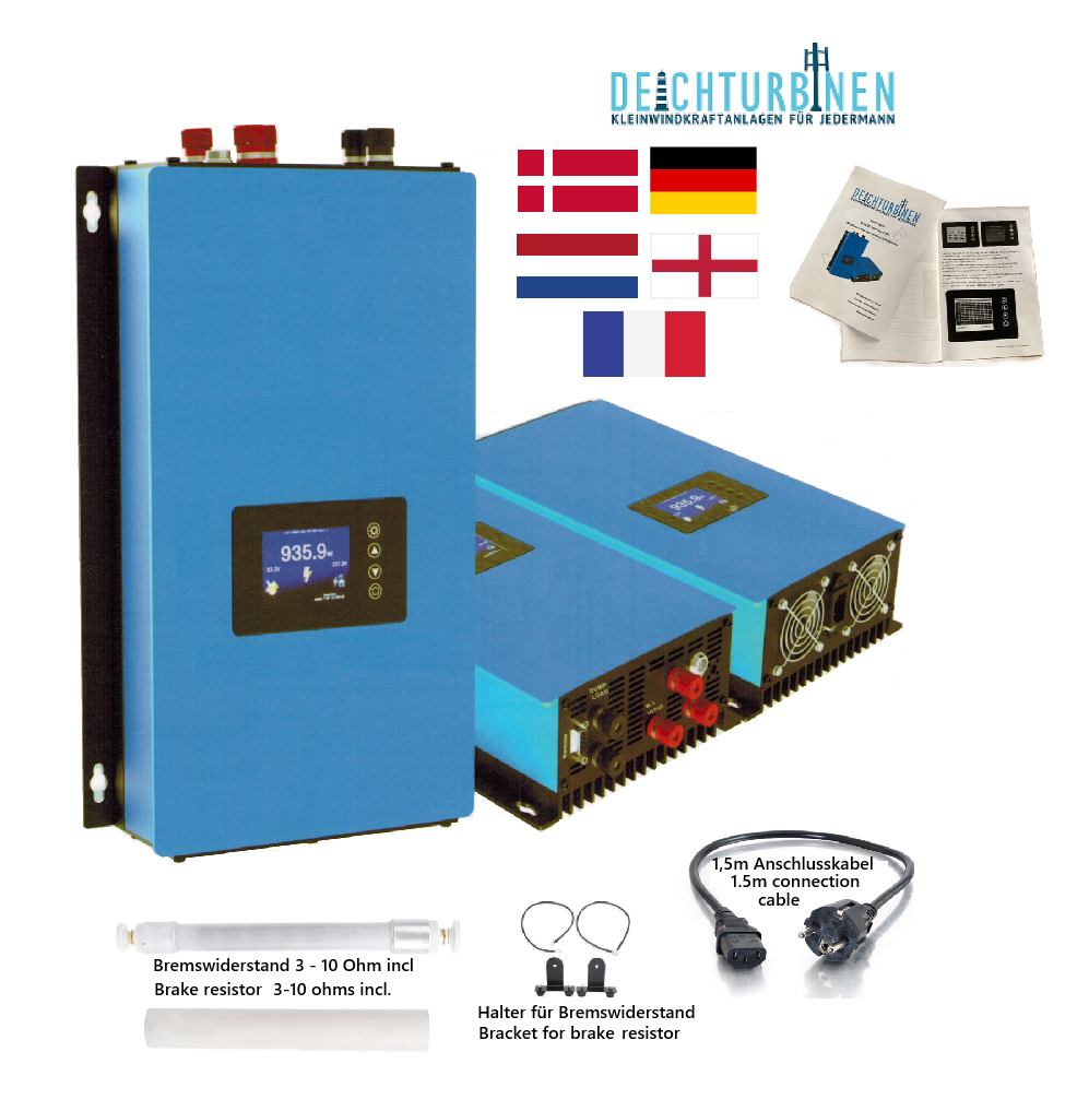 Dieses Netzanschlussgerät ist eine 2in1 Kombination aus Windkraftregler und Wechselrichter. Es wandelt den schwankenden Wechselstrom (AC) abgegeben vom Generator einer Windturbine in stabilen Gleichstrom (DC) und dann wieder zurück in Wechselstrom (230V/50Hz) zur Einspeisung in ihr Hausnetz bzw. das allgemeine Stromnetz. Sollte der Wind zu stark bzw. die Drehzahl zu hoch werden, ist eine elektrische Widerstandsbremse im Lieferumfang enthalten, die automatisch (ab einstellbarem Wert) die Turbine bremst!