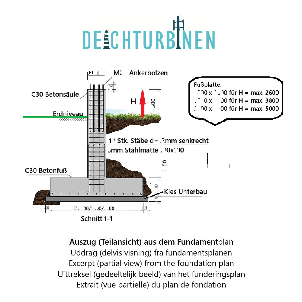 - Inkluderer forankringssæt med møtrikker til fundamentet (med positioneringsskabelon)