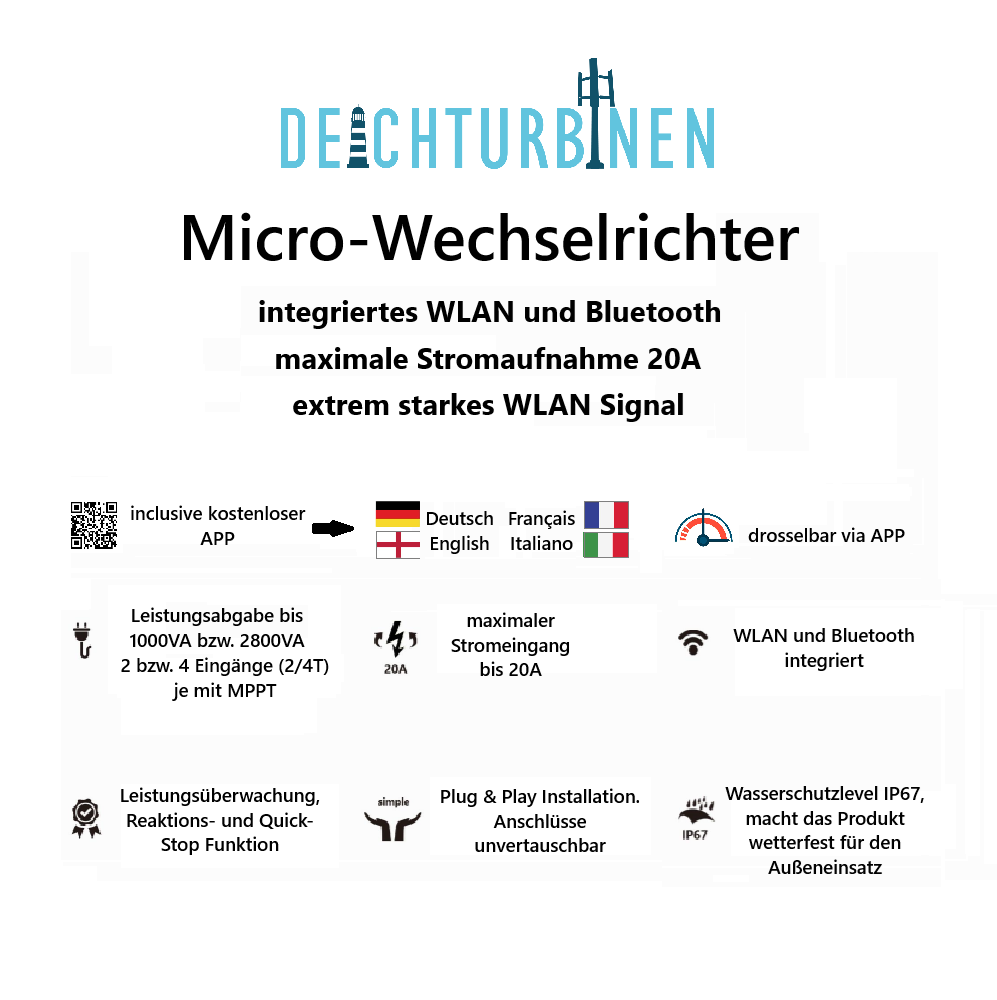 - Hochleistungs- Mikro- Wechselrichter mit Ausgangsleistung bis zu 800/2400 VA