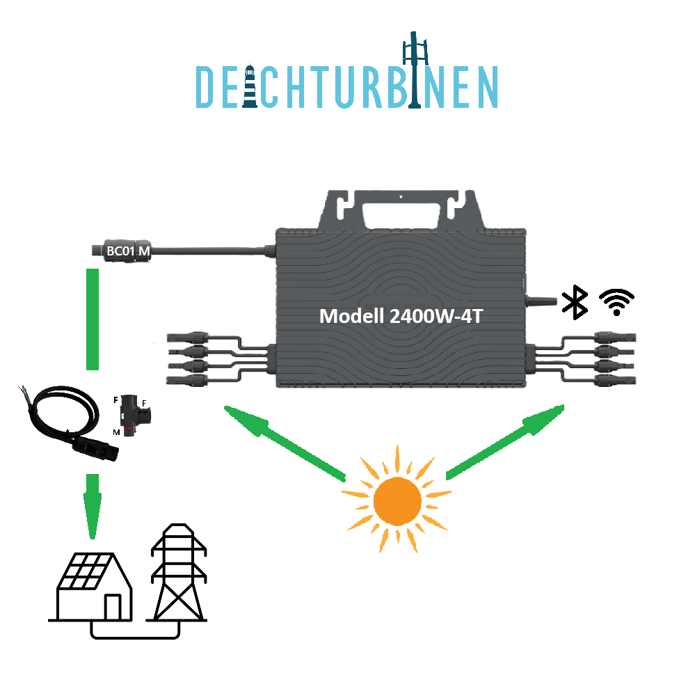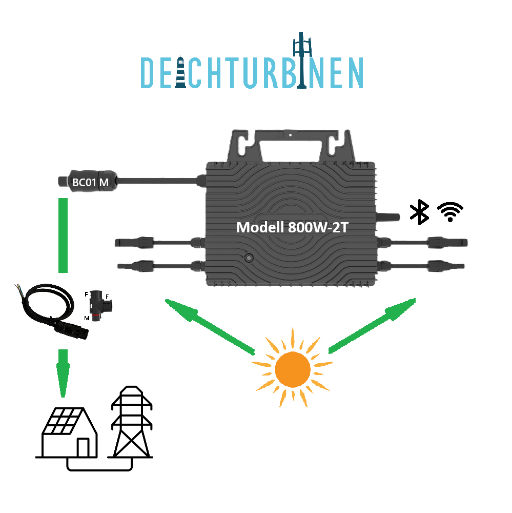 On-Grid Microwechselrichter 230V 800W / 2400W Nennleistung im Set mit MC4- und Netzverbindung, für POWERTracker und fest installierte 4-6-8 Module