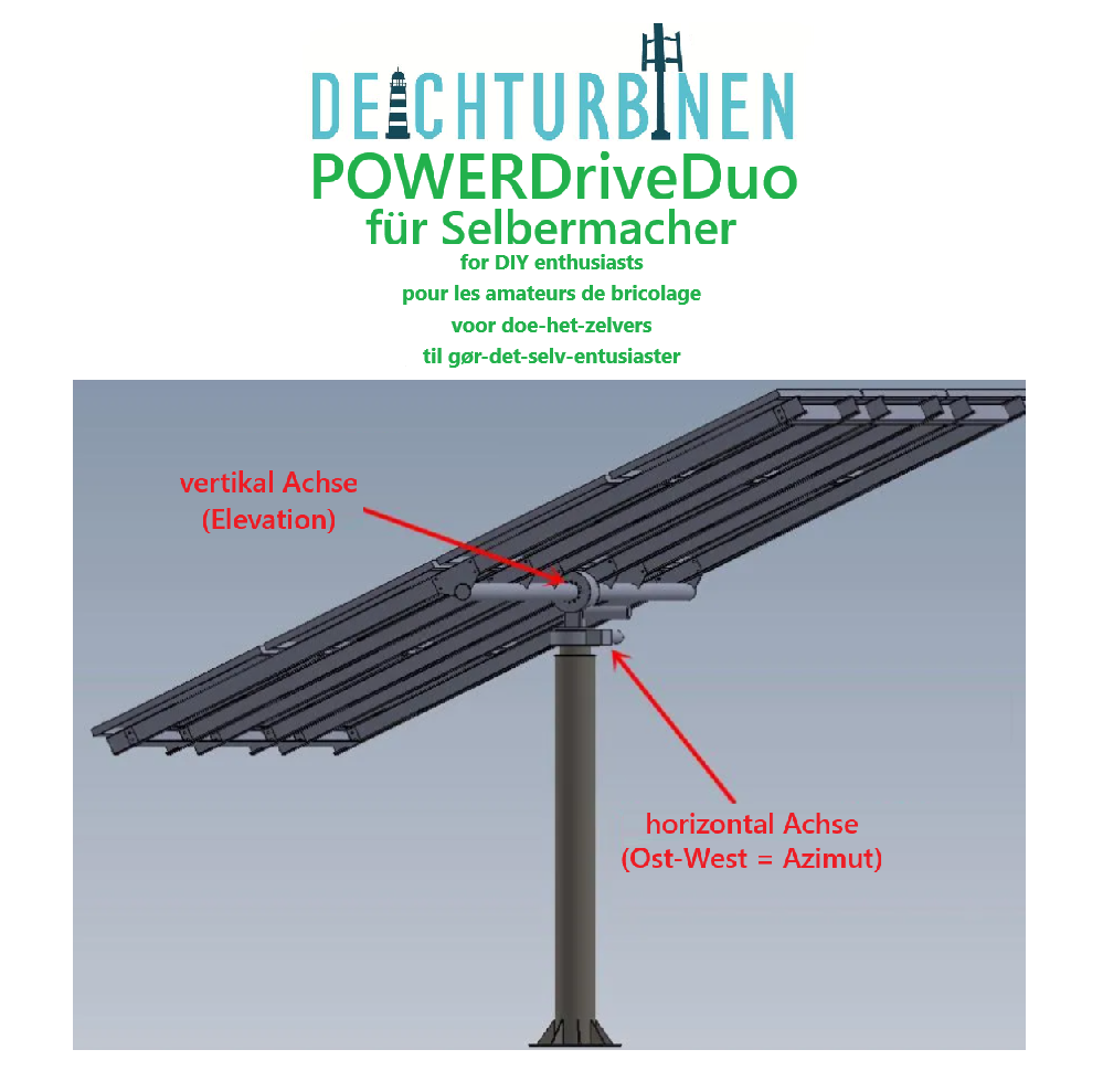 2- Schwenkantrieb- Achsen mit astronomischer Steuerung welche die Solarmodule stets optimal zur Sonne ausrichten